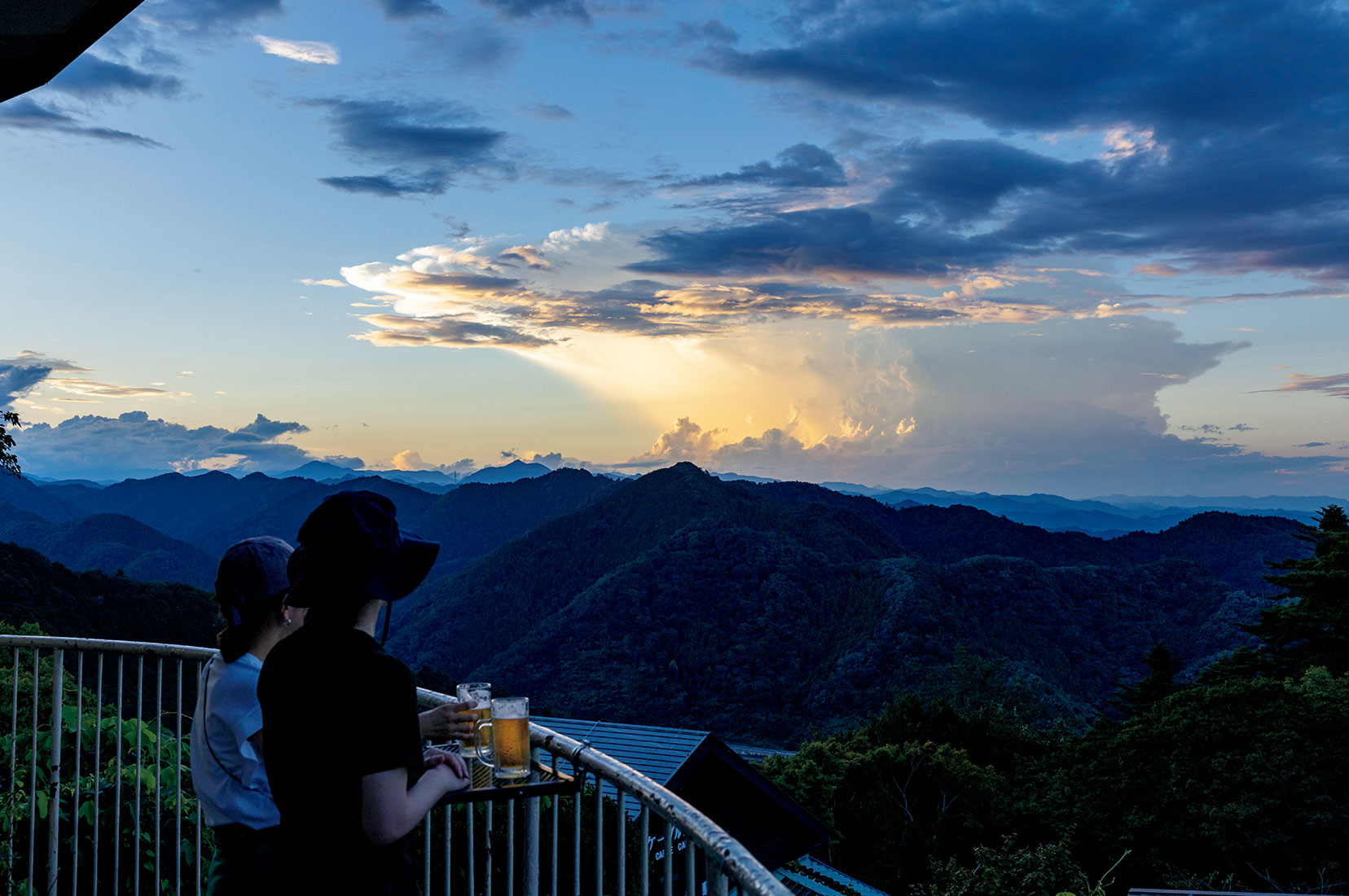遠く新宿や横浜の街並みを眼下に眺めるなら、ケーブルカーの終点にある霞台展望台や、「高尾山展望レストラン」のテラス席からがよいだろう。夏の4カ月間は「高尾山ビアマウント」として、和洋中30種ほどの料理と各種ビールをはじめとするドリンクを自由にチョイスできるビュッフェスタイルに。ジョッキを片手に暮れなずむ夕日や夜景に目をやれば、景色もまたごちそうになる。